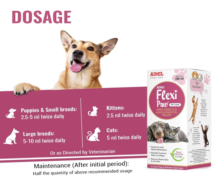 Dosage Chart & Instructions for Aimil Flexipaw Pet Liquid, Herbal Joint & Hip Support