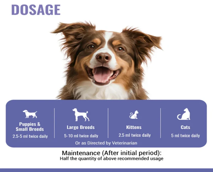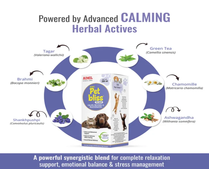 Dosage Chart & Instructions for Aimil Pet Bliss Pet Liquid for Calming & Stress Relief