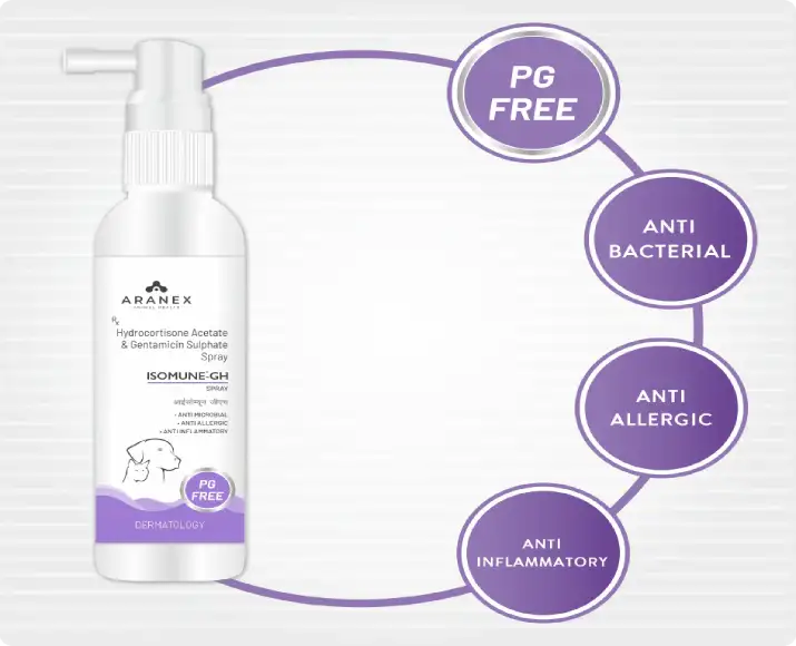 Aranex ISOMUNE GH Spray, 50 ML, is a scientifically formulated veterinary spray designed to support immunity in both cats and dogs, this Aranex ISOMUNE GH Spray vet-trusted solution is especially beneficial for pets with weak immunity, frequent infections, or those in recovery after illness, the Aranex ISOMUNE GH Spray is easy to administer, highly effective, and ensures your furry companion receives the extra immune support they need for a healthier and happier life.