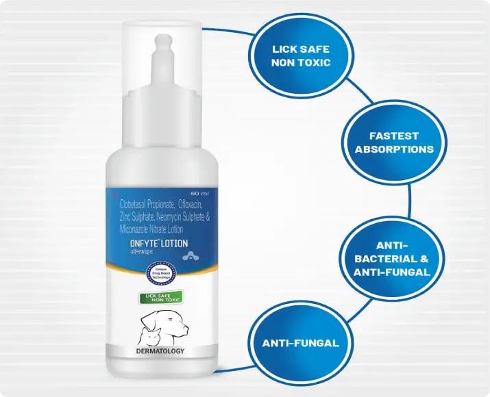 Aranex Onfyte Lotion is a gentle yet effective veterinary formulation designed for both dogs and cats, this Aranex Onfyte Lotion helps relieve common skin problems such as dryness, itching, irritation, and redness, providing comfort to your pets, suitable for pets of all ages, Aranex Onfyte Lotion ensures skin health is maintained while promoting faster healing and recovery, whether your furry companion is struggling with seasonal allergies, minor wounds, or skin irritation, Aranex Onfyte Lotion is the trusted solution recommended by veterinarians.