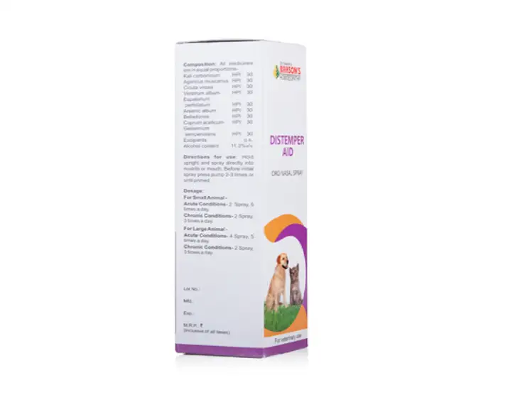 Bakson Veterinary Distemper Aid Oro Nasal Spray is a specially formulated homeopathic remedy designed to support dogs suffering from symptoms associated with canine distemper. Distemper is a serious viral condition that can affect the respiratory, digestive, and nervous systems of dogs. Bakson Veterinary Distemper Aid Oro Nasal Spray early supportive care plays a crucial role in managing symptoms and improving overall comfort.