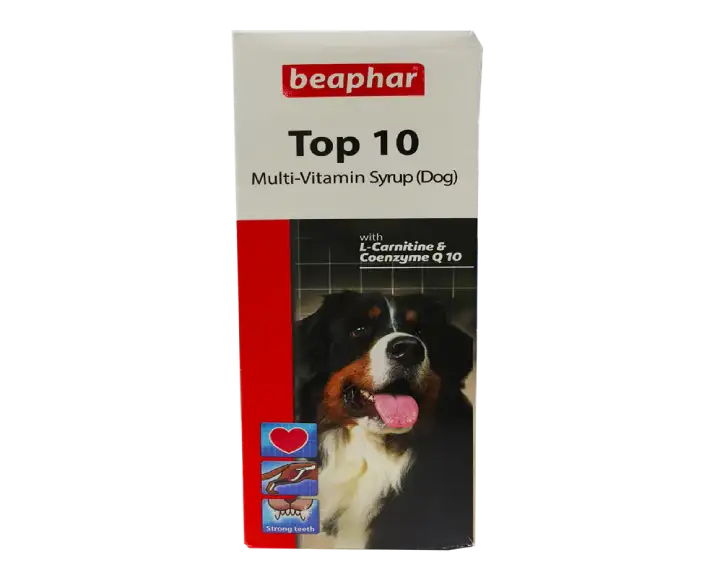 Beaphar TOP 10 Dog Syrup Multi Vitamin, 200 ML, is a premium daily nutritional supplement formulated to support your dog’s overall well-being, suitable for puppies, adult dogs, and senior pets, this Beaphar TOP 10 Dog Syrup multivitamin syrup ensures optimal growth, improved vitality, and strengthened immunity, packed with essential vitamins, minerals, and nutrients, the formula helps bridge nutritional gaps that everyday diets may not cover, the Beaphar TOP 10 Dog Syrup is highly palatable, making it easy to administer to even the pickiest eaters, whether your dog needs enhanced immunity, improved coat condition, or overall energy support, Beaphar TOP 10 Dog Syrup offers a reliable, vet-trusted solution.