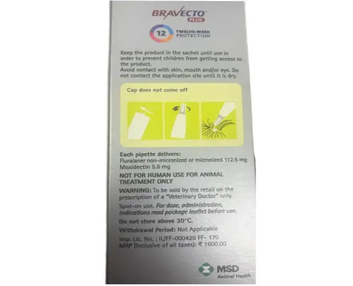 Bravecto Cat 112.5 MG (Fluralaner) Spot On solution is a vet-trusted topical antiparasitic treatment designed specifically for small cats & kittens, it offers powerful protection against fleas & ticks with a single application, Bravecto Cat 112.5 MG (Fluralaner) Spot On ideal for cats weighing between 1.2 kg and 2.8 kg, this advanced formula works systemically to eliminate existing infestations and prevent reinfestation, Bravecto Cat 112.5 MG (Fluralaner) Spot On is especially helpful for pet parents who want stress-free parasite control without monthly dosing, one easy spot-on application provides extended protection, Bravecto Cat 112.5 MG (Fluralaner) Spot On keeping your feline companion comfortable, healthy, and itch-free for weeks.
