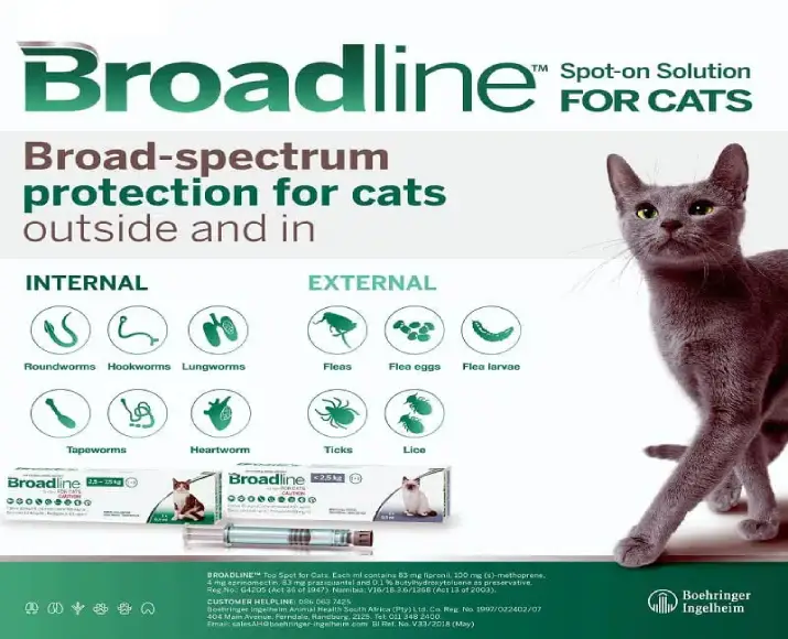 Broadline Spot On Cats your feline friend deserves complete, stress-free protection from harmful parasites, Broadline Spot On Cats is a vet-trusted, all-in-one topical solution specially designed for large cats weighing between 2.5 kg and 7.5 kg, this advanced formula safeguards your pet from fleas, ticks, roundworms, tapeworms, and even lungworms, ensuring they stay healthy, playful, and itch-free.