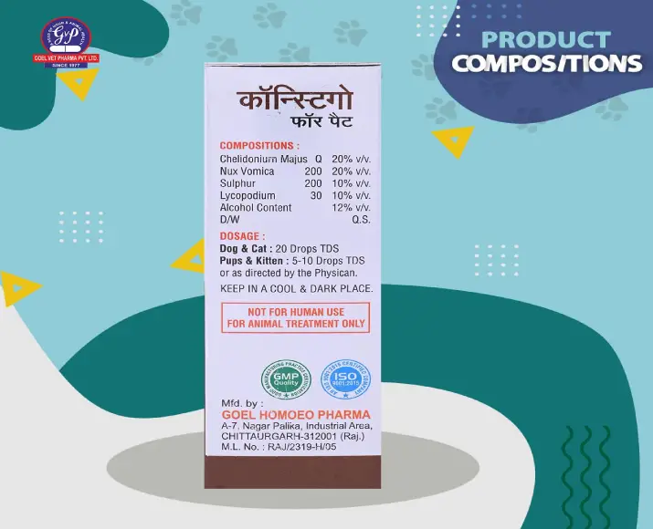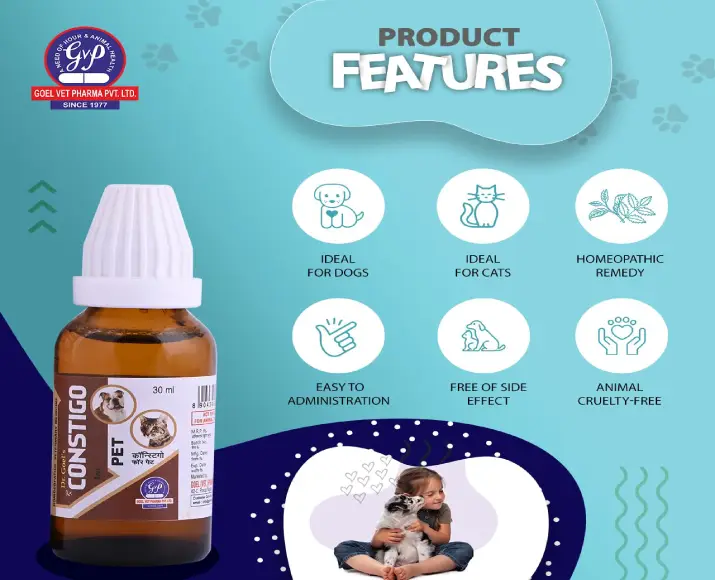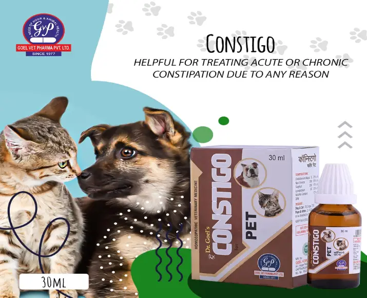 Constipation is a common digestive issue in pets, often leading to discomfort, loss of appetite, and irritability, Dr Goel’s CONSTIGO Homeopathic Remedy for Constipation is a safe, natural, and effective solution formulated to restore normal bowel movement and promote healthy digestion in both dogs & cats, this gentle homeopathic formulation is suitable for pets of all breeds and ages, Dr Goel’s CONSTIGO Homeopathic Remedy for Constipation offering non-invasive relief from mild to moderate constipation, Dr Goel’s CONSTIGO Homeopathic Remedy helps relieve bloating, improve appetite, and promote smoother stool passage without causing dependency or side effects.