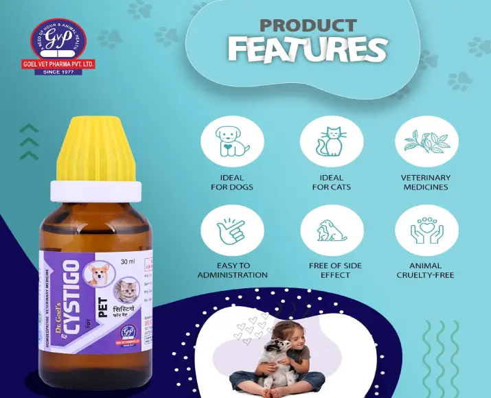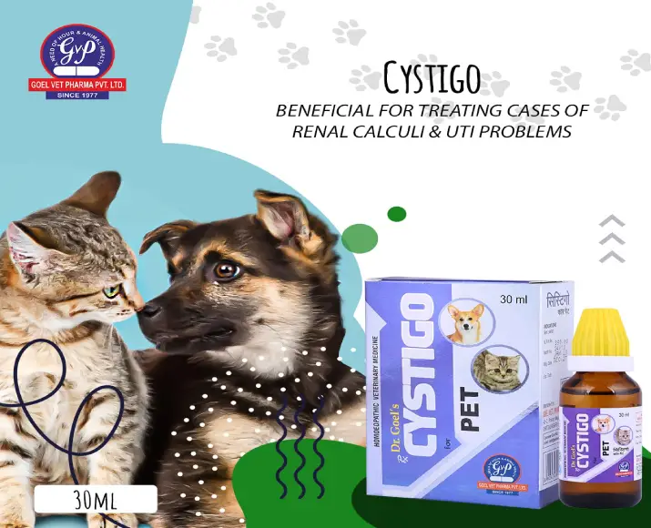 Dr Goel’s CYSTIGO Drops are a trusted homeopathic remedy specially formulated to support urinary tract and kidney health in dogs & cats, pets often suffer from urinary tract infections, inflammation, or difficulty passing urine due to age, diet, or infection, Dr Goel’s CYSTIGO Drops provides a natural, side-effect-free solution that works gently to relieve urinary discomfort, support bladder function, and restore renal balance, Dr Goel’s CYSTIGO Drops is suitable for both dogs & cats of all breeds and ages, making it a must-have wellness aid for every pet parent.