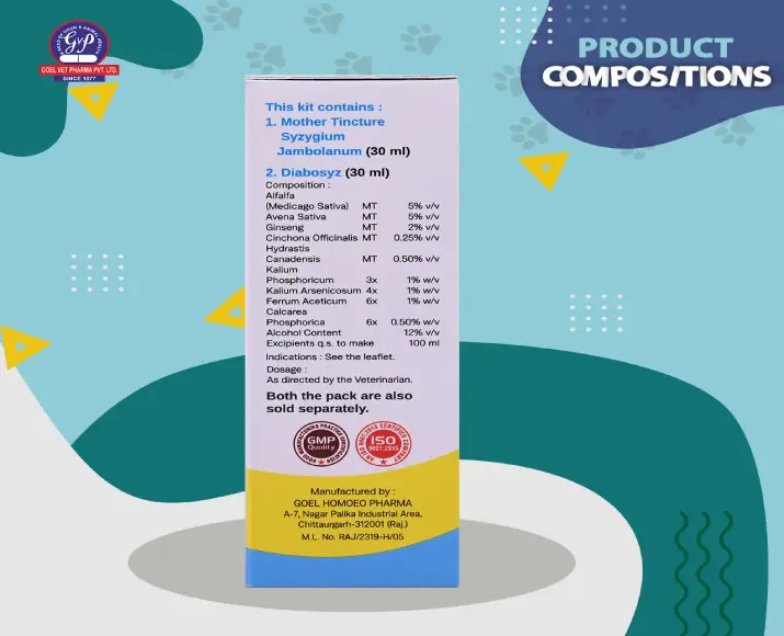 Dr Goel’s DIABOSYZ Jumbo Kit Drops are specially formulated homeopathic remedies designed to help manage diabetes-related symptoms in dogs & cats, this Dr Goel’s DIABOSYZ Jumbo Kit Drops dual-pack kit provides a gentle, natural way to support blood sugar regulation and enhance pancreatic function in pets suffering from diabetes mellitus, crafted with precision and care, these Dr Goel’s DIABOSYZ Jumbo Kit Drops are ideal for pet parents seeking a holistic alternative to manage diabetic symptoms such as excessive thirst, frequent urination, lethargy, and weight loss.