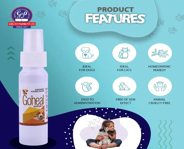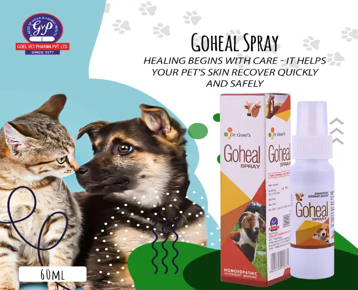 Dr Goel’s Goheal Spray promotes fast healing of wounds, cuts, & burns in pets, gentle, safe, & effective homeopathic care for skin injuries with natural ingredients.