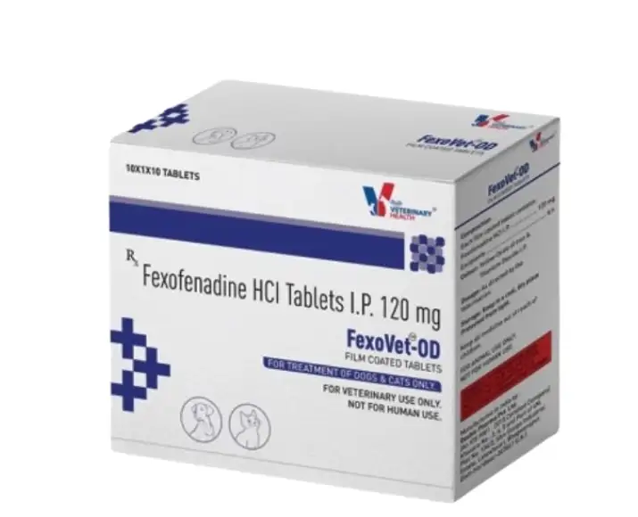 Drools FexoVet OD Tablets designed for both cats & dogs, this once-daily (OD) tablet supports effective management of seasonal allergies, food sensitivities, and environmental triggers. Whether your pet suffers from recurring skin irritation or sudden allergic flare-ups, Drools FexoVet OD Tablets help restore comfort and improve overall well-being.
