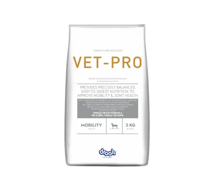 Drools VET PRO Mobility Adult Dog Dry Food is a specially formulated veterinary diet designed for adult dogs with joint stiffness, reduced mobility, or age-related concerns, Drools VET PRO Mobility Adult Dog Dry Food crafted by veterinary experts, this diet combines premium ingredients with advanced nutrition to support bone strength, cartilage health, and overall mobility, whether your dog is experiencing early signs of joint discomfort or simply needs extra support to stay active, this Drools VET PRO Mobility Adult Dog Dry Food trusted formula provides complete and balanced nourishment for long-term well-being.