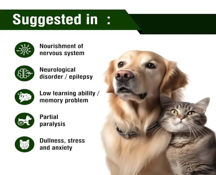 Ecora Pet Neuron Syrup is a specially formulated nervine care supplement designed to support the neurological health and emotional well-being of dogs & cats. Pets can experience stress, anxiety, hyperactivity, and nervous disorders due to environmental changes, travel, loud noises, or aging. This Ecora Pet Neuron Syrup advanced calming formula helps maintain balanced nervous system function while promoting relaxation without causing excessive sedation.