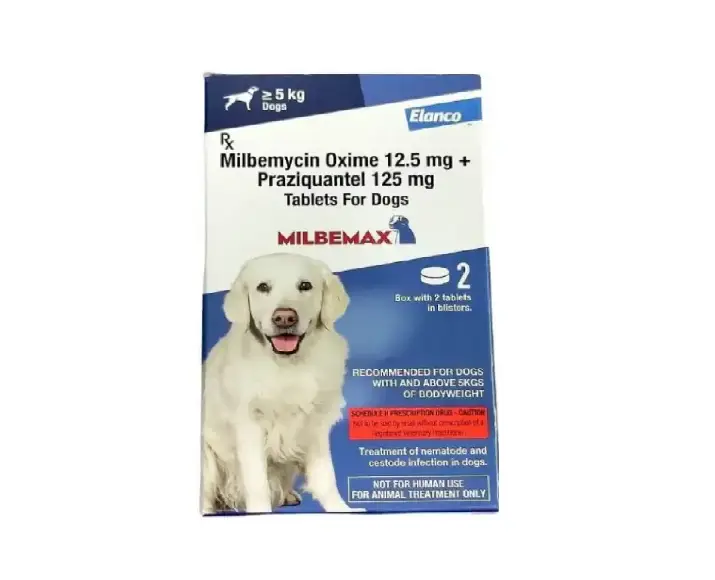 Elanco Milbemax Tablet For dogs give your furry friend the protection they deserve with Elanco Milbemax Tablet for dogs, specially formulated for adult dogs, this  Elanco Milbemax Tablet vet-recommended dewormer targets heartworms, lungworms, roundworms, and hookworms, offering comprehensive parasite defense in a convenient, 2-tablet pack, whether your dog is active outdoors or primarily stays indoors, exposure to parasites is a serious health concern, Elanco Milbemax Tablets provide a safe, effective, and fast-acting solution, making it an essential part of your pet’s regular health care routine, designed for easy oral administration, this treatment ensures both comfort for your pet and peace of mind for you.