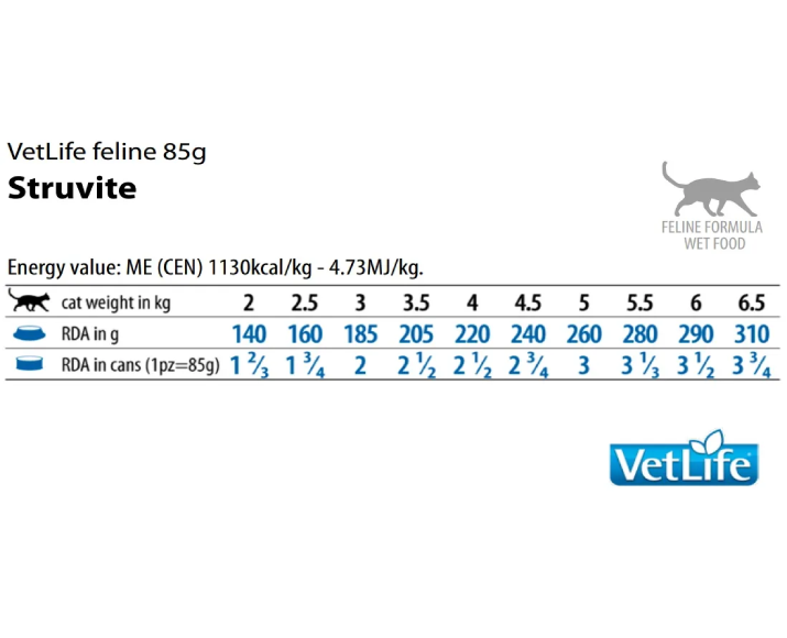 Dosage Chart & Instructions for Farmina Vetlife Struvite Cat Wet Food