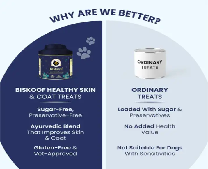 Fur Ball Story Biskoof Healthy Skin & Shiny Coat Biscuits Treats are specially formulated dog treats designed to support skin health and coat shine while rewarding your pet with a delicious snack. These crunchy biscuits combine great taste with skin-nourishing nutrients to keep dogs happy, healthy, and well-groomed from the inside out.