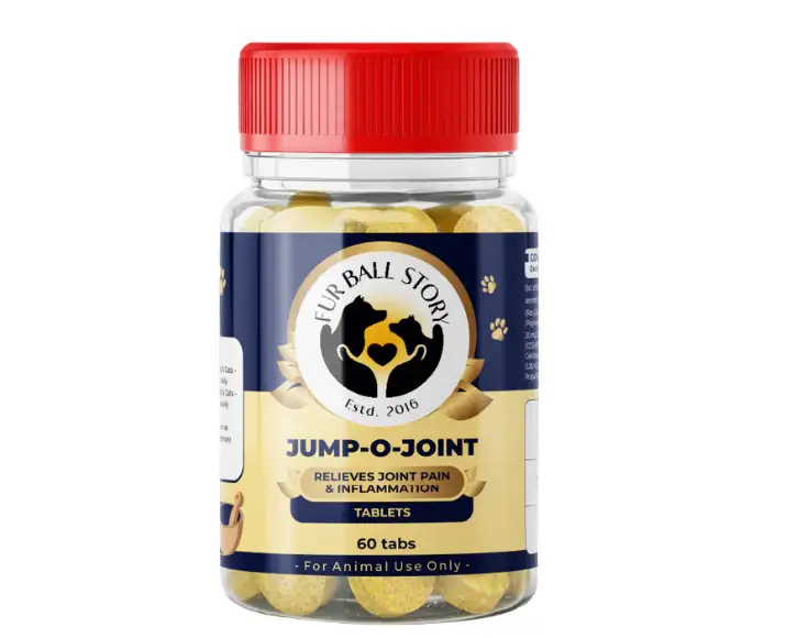 Fur Ball Story Jump O Joint Tablet is a scientifically formulated joint support supplement designed for dogs & cats experiencing stiffness, discomfort, reduced mobility, or age-related joint issues, Fur Ball Story Jump O Joint Tablet suitable for pets of all breeds and sizes, this advanced joint care formula helps restore mobility, ease daily movement, support cartilage health, and improve overall comfort, whether your pet is a senior companion, recovering from an injury, or showing early signs of joint stress, these Fur Ball Story Jump O Joint Tablet offer reliable and safe support for long-term joint wellness, Fur Ball Story Jump O Joint Tablet made with vet-trusted ingredients, the product is a preferred choice among pet parents looking for natural, gentle, and effective relief to maintain healthy joints and an active lifestyle for their furry family members.