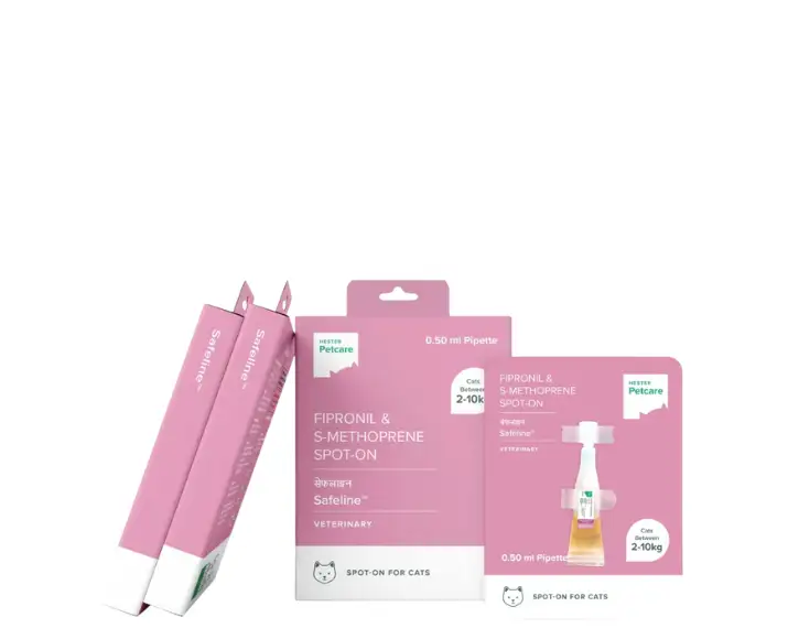 Effective tick & flea protection for cats 2–10kg, Hester Safeline Cat ensures safe, long-lasting control with Fipronil & S Methoprene, trusted vet-recommended.