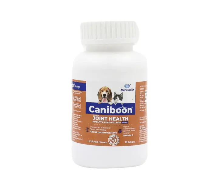 Mankind Caniboon Tablets for dogs and cats are specially formulated supplements designed to promote joint health and improve mobility in pets, Mankind Caniboon Tablets whether your furry friend is dealing with stiffness, reduced activity, or age-related joint concerns, these tablets provide comprehensive support, suitable for both dogs and cats, Mankind Caniboon Tablets helps in maintaining strong, flexible joints and ensures an active, playful lifestyle.