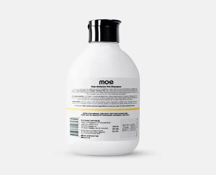 Moe Puppy Tick Defense Shampoo is a specially formulated grooming solution designed to protect dogs & cats from ticks and fleas while maintaining healthy skin and coat hygiene. Ideal for pet parents looking for a safe and effective way to manage external parasites, this Moe Puppy Tick Defense Shampoo offers a gentle yet powerful cleansing experience. Its balanced formulation ensures that your pet’s skin remains nourished and irritation-free, even with regular use. Suitable for both cats & dogs, Moe Puppy Tick Defense Shampoo is perfect for maintaining overall hygiene and comfort in pets prone to tick and flea infestations.