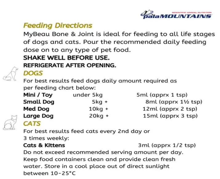 Dosage Chart & Instructions for My Beau Bone & Joint Food Supplement