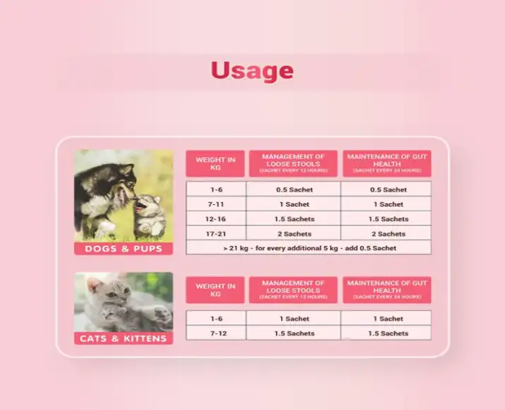 How to Use: Open the sachet and mix the granules thoroughly with regular food, ensure fresh drinking water is available at all times, duration of use may vary depending on condition or as advised by a veterinarian.