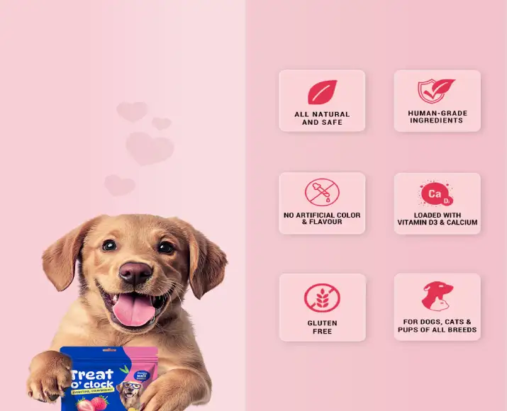 Natural Remedies Treat O Clock Strawberry & Chicken Dog Treats, Energy Booster with Vitamin D3 & Calcium, 75 GM