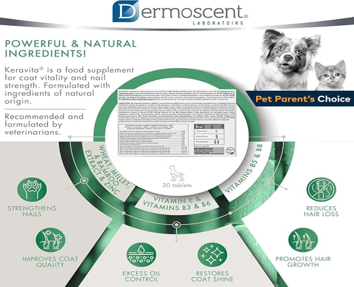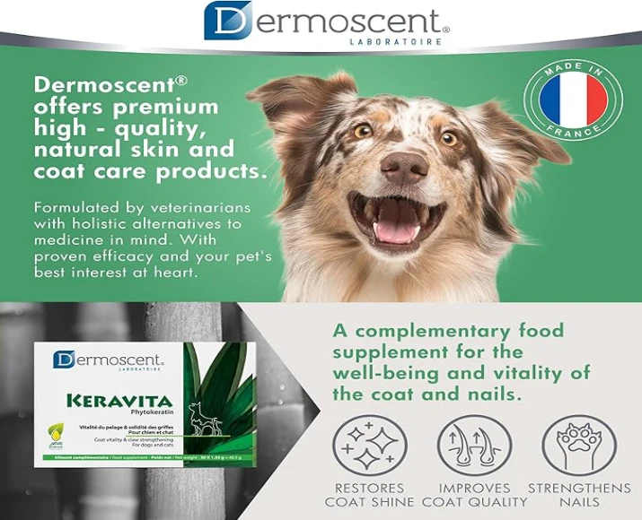 Skin and coat health reflect your pet’s overall well-being. Nutritional deficiencies, seasonal changes, allergies, and stress can affect coat texture and shine. Savavet Dermoscent Keravita Capsules provide targeted nutritional support to restore and maintain skin barrier function and coat vitality.