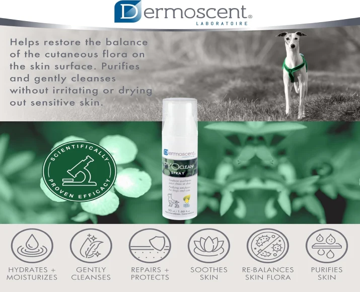 Savavet Dermoscent Pyoclean Spray is a veterinary dermatological solution specially formulated to help manage bacterial skin infections, hot spots, superficial wounds, and irritated skin in dogs & cats. Skin infections can develop due to allergies, scratching, wounds, or moisture retention, leading to redness, itching, discomfort, and unpleasant odor.