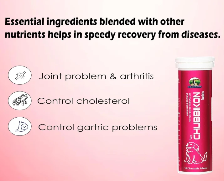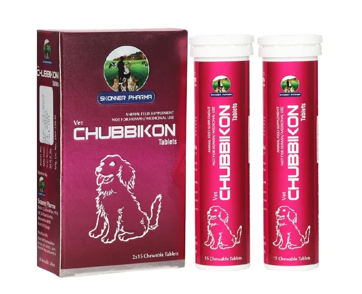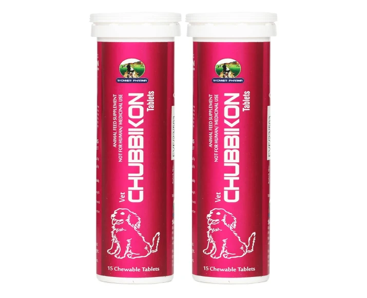 Skonner Pharma Chubbikon Multivitamins are specially formulated nutritional supplements designed for adult dogs and cats requiring support in maintaining a healthy weight and overall well-being. These Skonner Pharma Chubbikon Multivitamins combine essential vitamins, minerals, and metabolic boosters that help regulate body weight, improve energy levels, and enhance daily vitality. Ideal for pets prone to obesity or low activity levels, this Skonner Pharma Chubbikon Multivitamins ensures balanced nutrition while supporting metabolism and digestion. It is suitable for both dogs and cats, making it a convenient choice for multi-pet households.