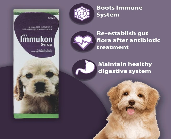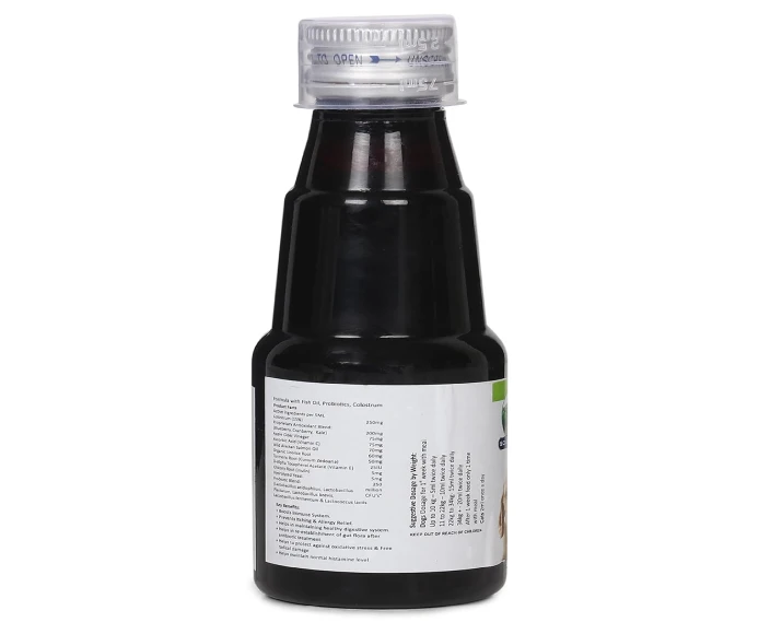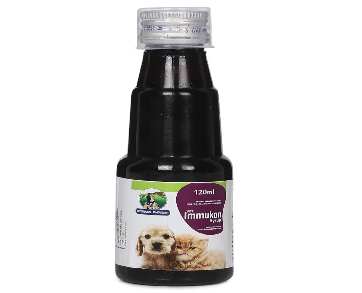 Ideal for pet parents seeking a reliable and vet-recommended supplement, Skonner Pharma Immukon Syrup is easy to administer due to its liquid form and palatable taste. It not only helps relieve allergic reactions but also strengthens your dog’s natural defense system, making it a valuable addition to their daily care routine.