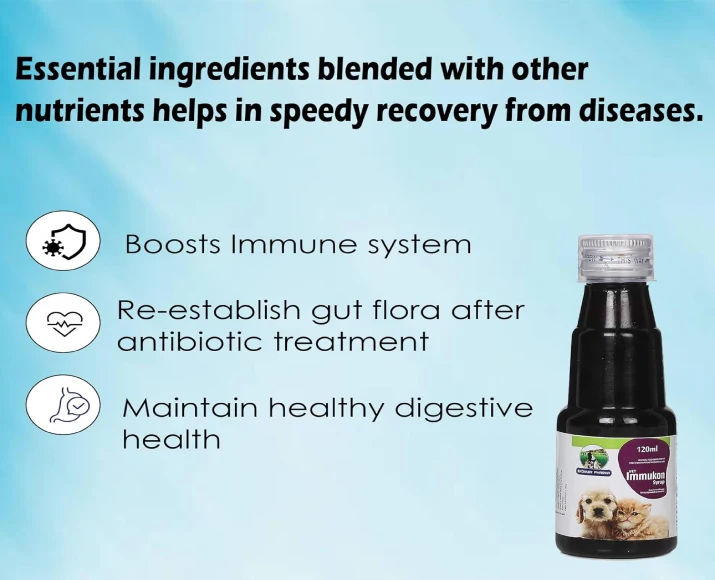 Skonner Pharma Immukon Syrup is a specially formulated supplement designed to support the immune system of adult dogs while helping manage common issues like allergies and itching. Dogs often suffer from seasonal allergies, food sensitivities, or environmental irritants that lead to discomfort, excessive scratching, and skin problems. This Skonner Pharma Immukon Syrup provides a gentle yet effective solution to improve your dog’s overall well-being.