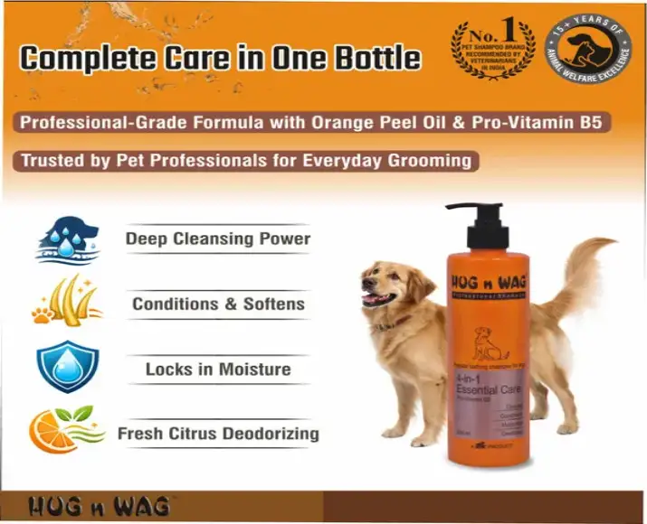 TTK Hug N Wag 4 in 1 Shampoo is a premium grooming solution specially formulated for dogs to deliver complete skin and coat care in one easy step. Designed for pet parents who want effective yet gentle grooming, this TTK Hug N Wag 4 in 1 Shampoo combines cleansing, conditioning, moisturizing, and deodorizing properties to keep your dog looking and feeling its best. Enriched with Pro Vitamin B5, it supports healthy skin while enhancing coat softness and shine. TTK Hug N Wag 4 in 1 Shampoo ideal for all breeds and coat types, this shampoo is suitable for routine bathing and helps maintain hygiene without stripping natural oils. Whether your dog has a short, long, or sensitive coat, this formula ensures a refreshing and nourishing grooming experience every time.