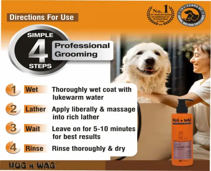 Dosage Chart & Instructions for TTK Hug N Wag 4 in 1 Shampoo