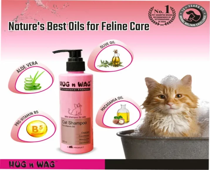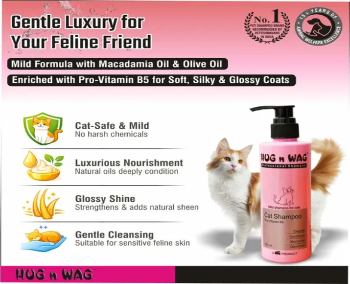 TTK Hug N Wag Mild Cat Shampoo with Pro Vitamin B5, 225 ML