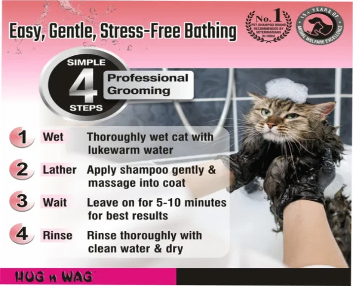 Safe for Regular Use: Mild composition makes it suitable for frequent bathing without harming sensitive feline skin.