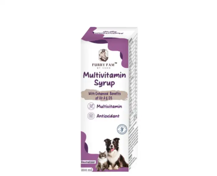 Veko Furry Fam Multivitamin Syrup is a comprehensive daily nutritional supplement formulated to support the overall health and vitality of dogs & cats. Designed for pets of all breeds and life stages, this Veko Furry Fam Multivitamin Syrup easy-to-use liquid multivitamin helps bridge common dietary gaps that may occur due to picky eating, illness, stress, growth phases, or aging. Veko Furry Fam Multivitamin Syrup Regular supplementation plays an essential role in maintaining strong immunity, healthy metabolism, proper growth, and optimal organ function. The palatable syrup form ensures effortless administration, Veko Furry Fam Multivitamin Syrup making it especially suitable for puppies, kittens, senior pets, and animals recovering from illness. Veko Furry Fam Multivitamin Syrup is ideal for pet parents seeking a reliable, vet-recommended solution for everyday wellness support.