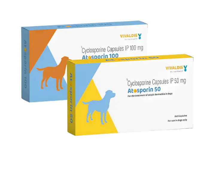 This item: Vivaldis Atosporin (Cyclosporin) Capsules for Dogs, 5 Tablets Price range: ₹240 through ₹423 Price range: ₹240 through ₹423