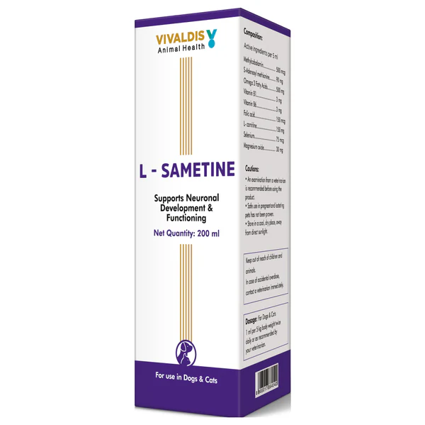 Vivaldis L Sametine Syrup is a scientifically formulated liver support supplement designed specifically for dogs & cats, this powerful hepatoprotective syrup helps maintain optimal liver function, supports detoxification, and enhances overall vitality in pets, whether your furry companion is recovering from liver damage, coping with infections, or experiencing appetite loss, this Vivaldis L Sametine Syrup provides the ideal nutritional and therapeutic boost, L Sametine contains a unique blend of essential amino acids and natural ingredients that Vivaldis L Sametine Syrup promote liver regeneration and protect hepatic cells from toxins and oxidative stress.