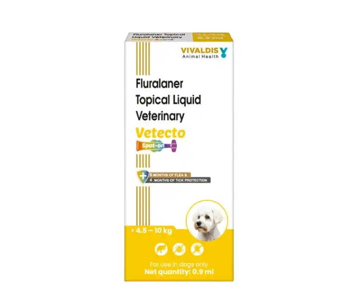 Vivaldis Vetecto Spot On Small is a modern, vet-trusted topical solution formulated to protect dogs weighing 4.5 to 10 kg from ticks and fleas. Designed for pet parents who want reliable, long-lasting parasite control without complicated dosing, this Vivaldis Vetecto Spot On Small uses fluralaner, a well-researched isoxazoline molecule known for its rapid action against external parasites. Vivaldis Vetecto Spot On Small regular tick & flea prevention is essential for your dog’s comfort and health, as infestations can lead to skin irritation, allergies, anemia, and the transmission of tick-borne diseases. Vivaldis Vetecto Spot On Small fits seamlessly into monthly care routines and is suitable for adult dogs and puppies as advised by a veterinarian.