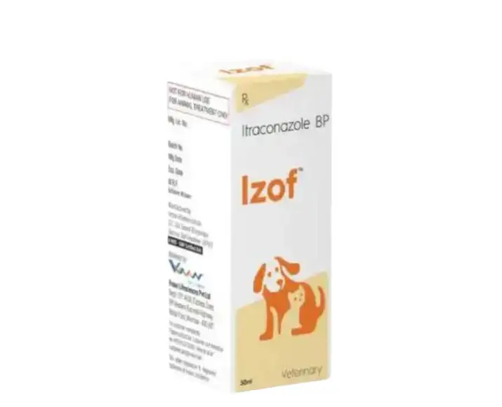 Vvaan Izof Oral Suspension is a veterinary antifungal medication formulated with itraconazole to treat a wide range of fungal infections in dogs & cats. It is specially designed for pets suffering from skin, coat, and systemic fungal conditions such as ringworm, yeast infections, and dermatitis caused by fungi. This Vvaan Izof Oral Suspension is ideal for pet parents looking for a reliable, Vvaan Izof Oral Suspension easy-to-administer treatment that ensures fast relief and long-term protection. suitable for both dogs & cats, it supports healthier skin and a shinier coat by targeting infections at their root.
