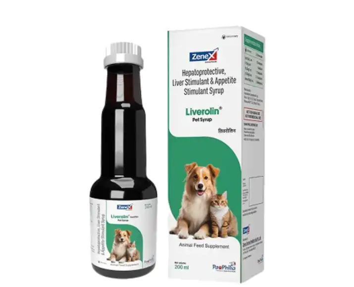 Zenex Liverolin Pet Syrup is a specially formulated liver tonic designed for dogs & cats requiring digestive support, liver protection, and enhanced metabolic function, pets can develop liver stress due to infections, dietary issues, toxin exposure, medication side effects, or age-related changes, this Zenex Liverolin Pet Syrup advanced formula helps rejuvenate liver cells, regulate bile secretion, and restore healthy appetite, ideal for pets recovering from illness, facing digestion troubles, or showing signs of fatigue and poor eating habits, Zenex Liverolin Pet Syrup ensures safe and effective daily hepatic support, its palatable liquid format makes administration easy for both dogs & cats, including picky eaters, whether you’re managing a chronic liver condition or seeking preventive care, this Zenex Liverolin Pet Syrup tonic offers complete, vet-trusted support.