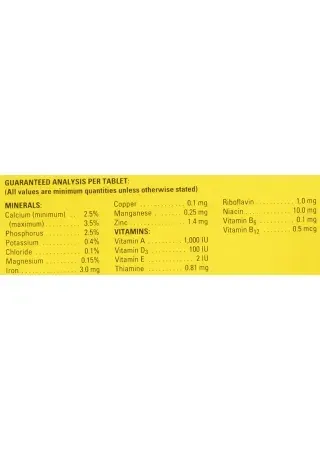 Active Ingredients: Essential vitamins (including Vitamin A, D, E, B-complex), key minerals (such as calcium and phosphorus), and trace elements required for balanced nutrition.